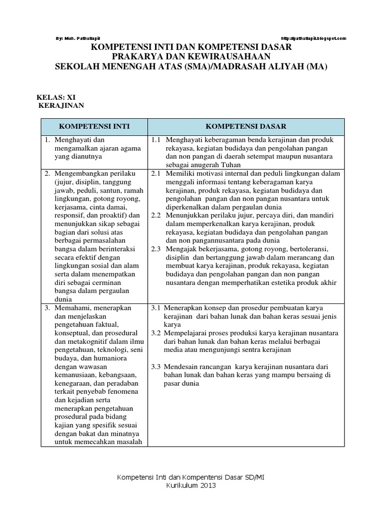 Ki Dan Kd Prakarya Dan Kewirausahaan Sma Ma Xi Semester 1 2 Pdf