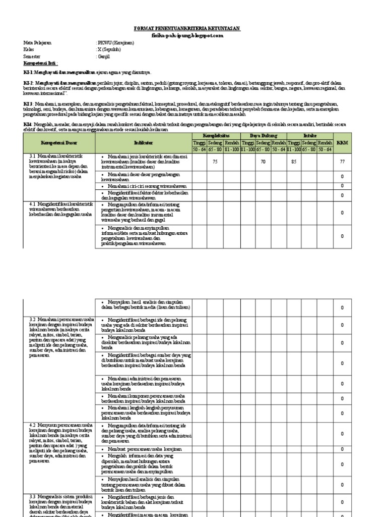 Kkm Prakarya Kerajinan Kelas X Kurikulum 2013 Revisi 2018 Pdf